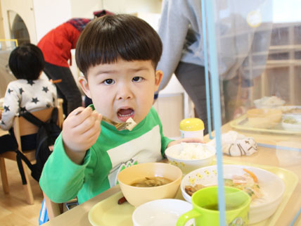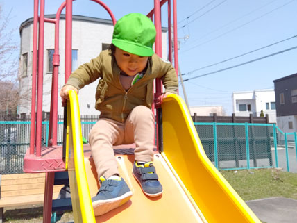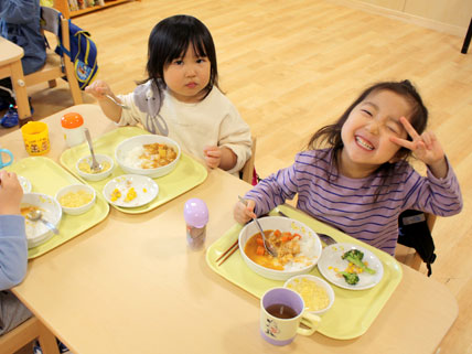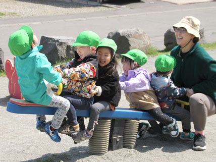 年少組です。だんだんと「自分でできる!」ことが増えてくる時期です。 また、自分の気持ちや考えを言葉で表現できるようになるので、お友だちとの関わりがより一層楽しくなり、園内外で体をいっぱいに使って活動します。