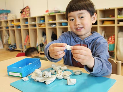 年中組です。様々なことに興味が広がり、自分のことは自分でできる力もつきます。お友だちとの関係もより深くなり、協力して一つの遊びを作り上げることもできるようになります。幼稚園だからこそ、友達と一緒だからこそできる遊びをダイナミックに経験していきます。